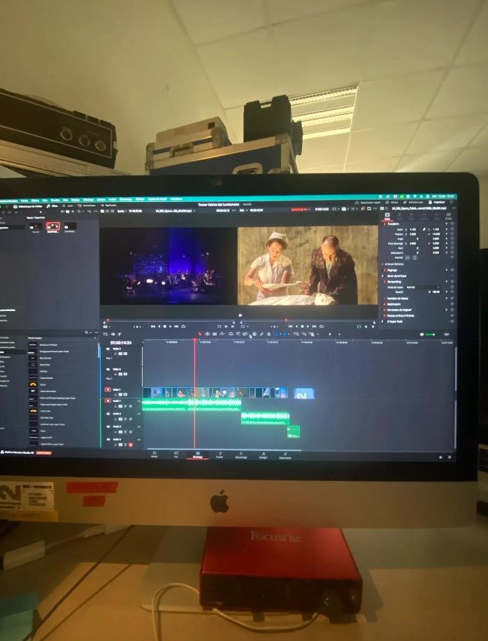 Etant donné que l’équipe du CREA est en sous-effectif depuis quelques mois, il y a quelques projets qui restent en stand-by. Ils m’ont donc demandé de terminer ces montages. Le premier était une captation d’une conférence de Peter Singer, pour laquelle il fallait rajouter les cartons de début et de fin, et faire un peu de colorimétrie car l’image était très verte. Ensuite, j’ai monté une interview sur une doctorante CIFRE, qui avait été tournée l’année dernière mais jamais montée. J’ai également réalisé une bande-démo d’une troupe qui avait joué à l’Opéra de Rennes. Leur spectacle avait été capté par le CREA, et ils demandaient une bande-démo pour pouvoir montrer leur pièce à des salles de spectacle. Le teaser est en cours de validation.